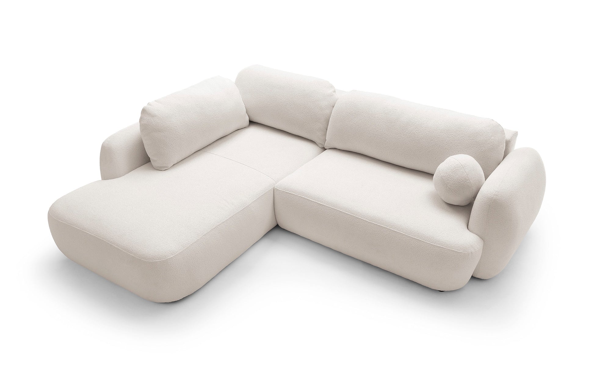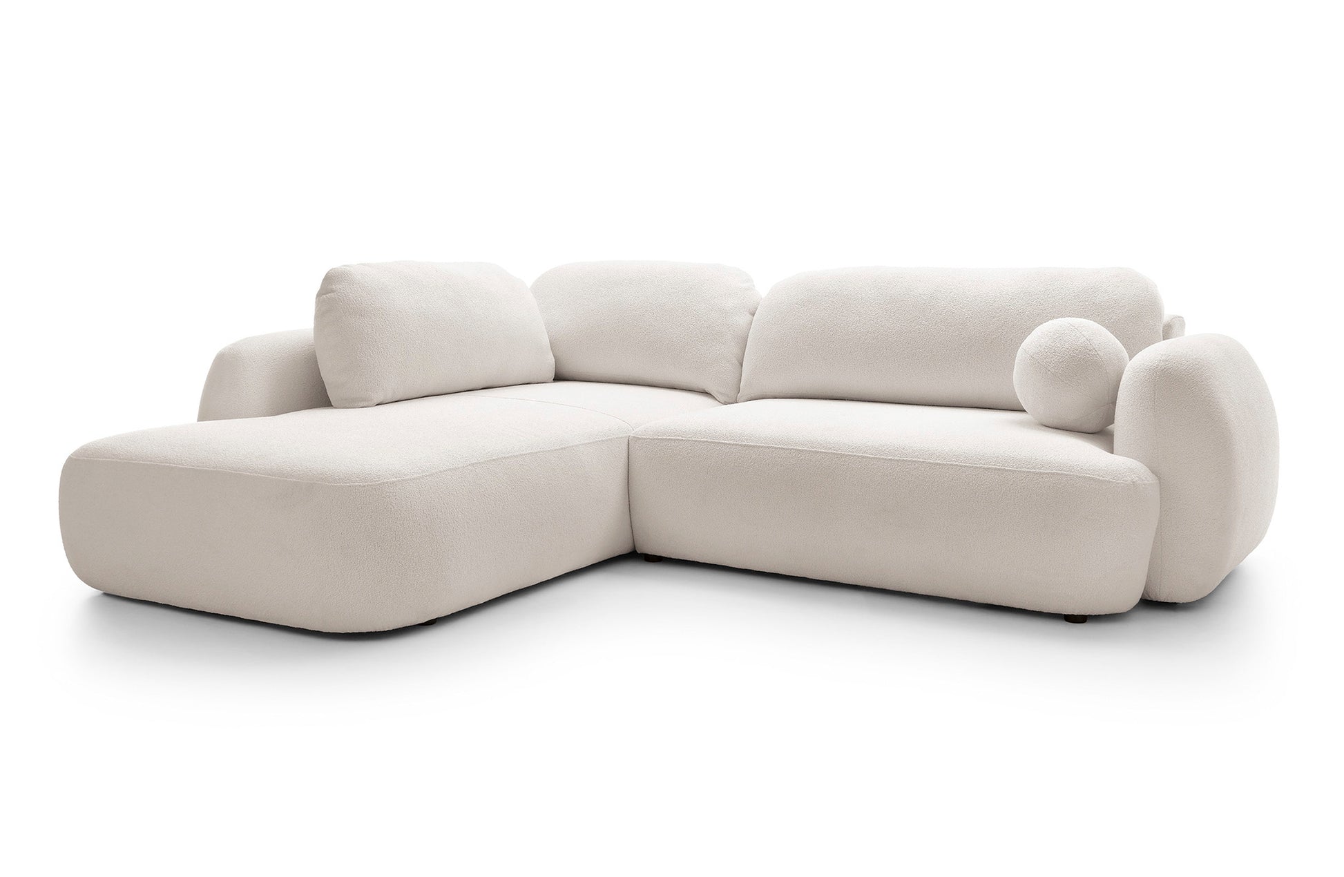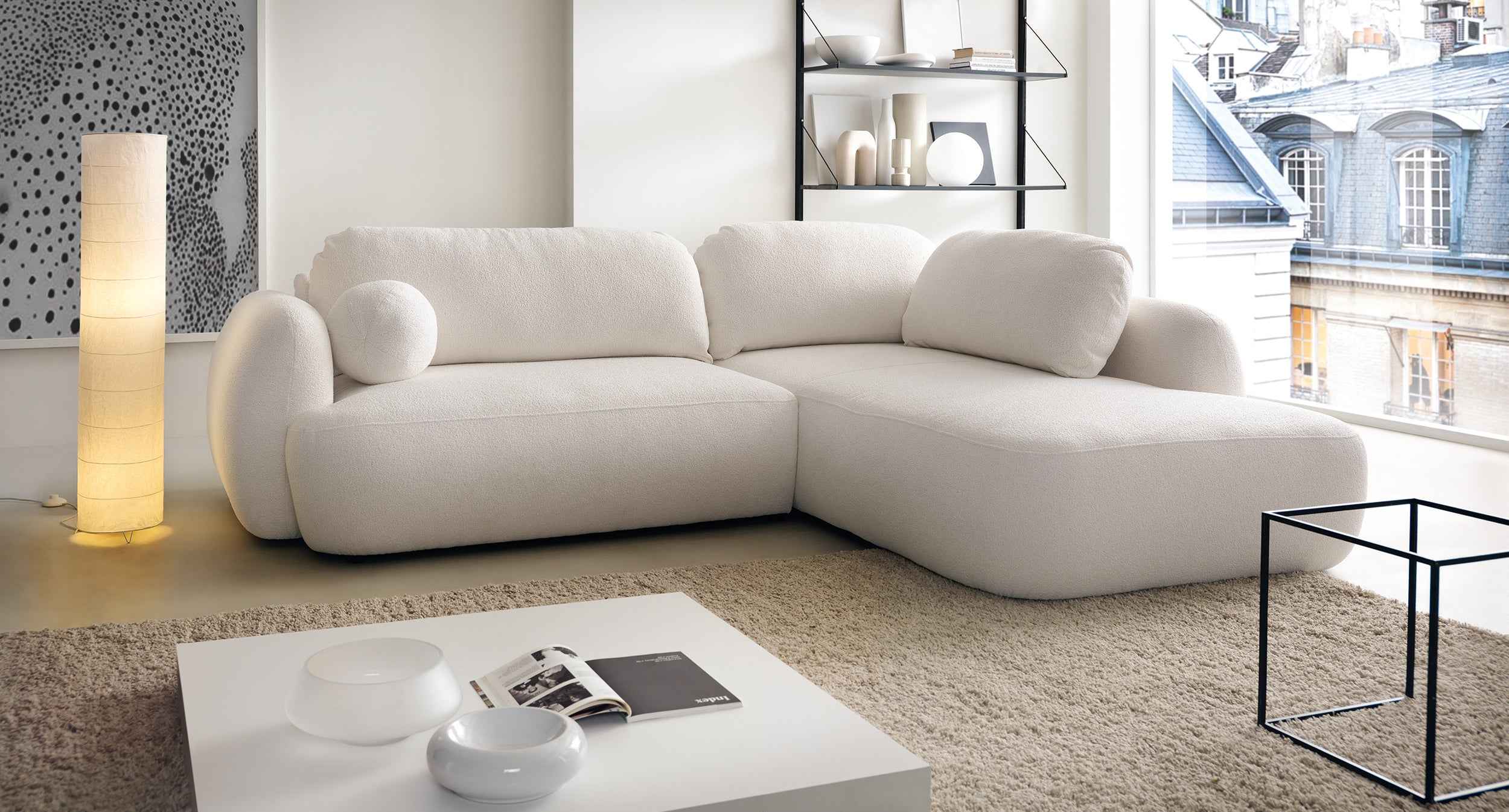 Narożnik Mayo Long to propozycja dla miłośników designerskich wnętrz, którzy cenią komfort i oryginalny wygląd mebli. Zaokrąglona bryła, miękkie linie i przyjemna w dotyku tkanina bouclé nadają mu wyjątkowy charakter, który idealnie wpisuje się w nowoczesne, minimalistyczne i skandynawskie aranżacje.