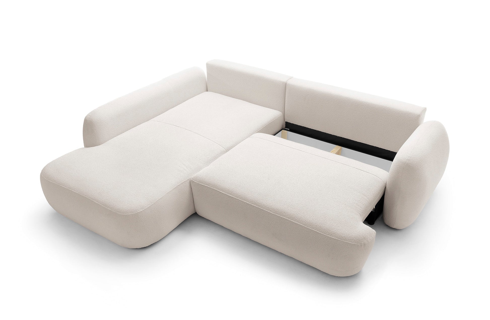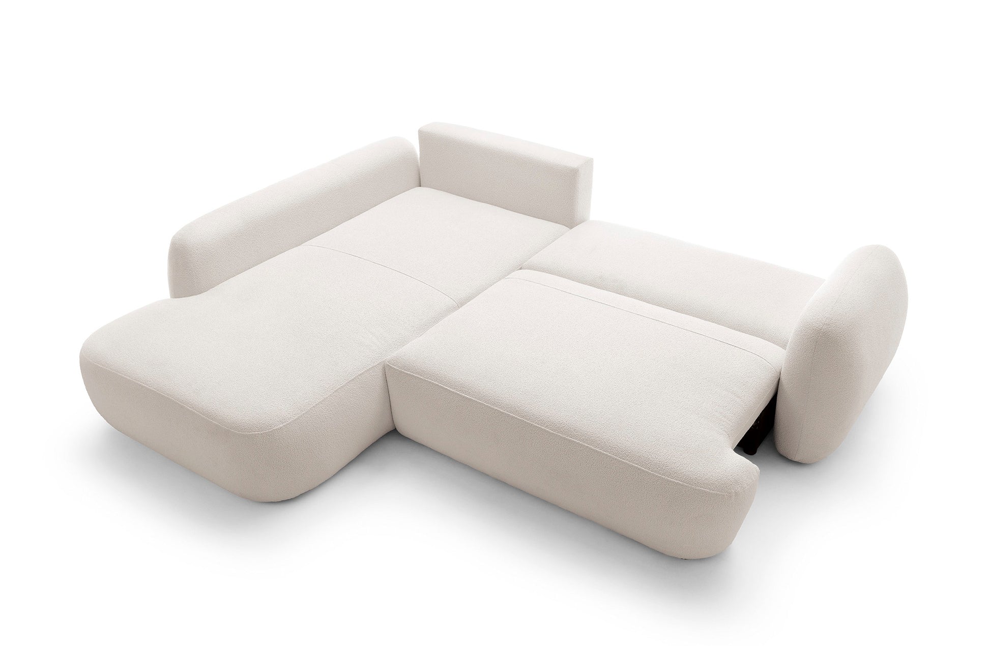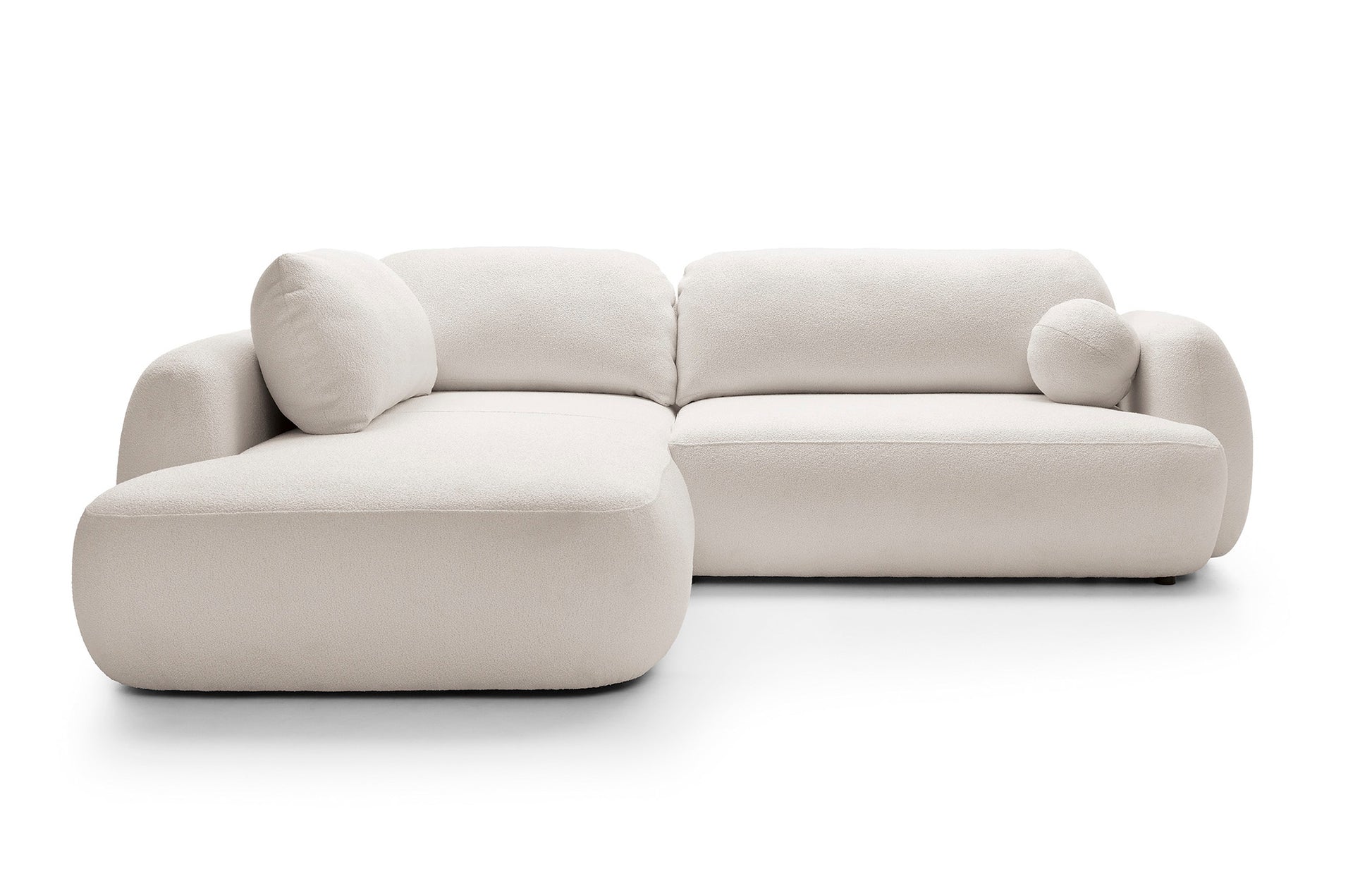 Narożnik Mayo Long to propozycja dla miłośników designerskich wnętrz, którzy cenią komfort i oryginalny wygląd mebli. Zaokrąglona bryła, miękkie linie i przyjemna w dotyku tkanina bouclé nadają mu wyjątkowy charakter, który idealnie wpisuje się w nowoczesne, minimalistyczne i skandynawskie aranżacje.