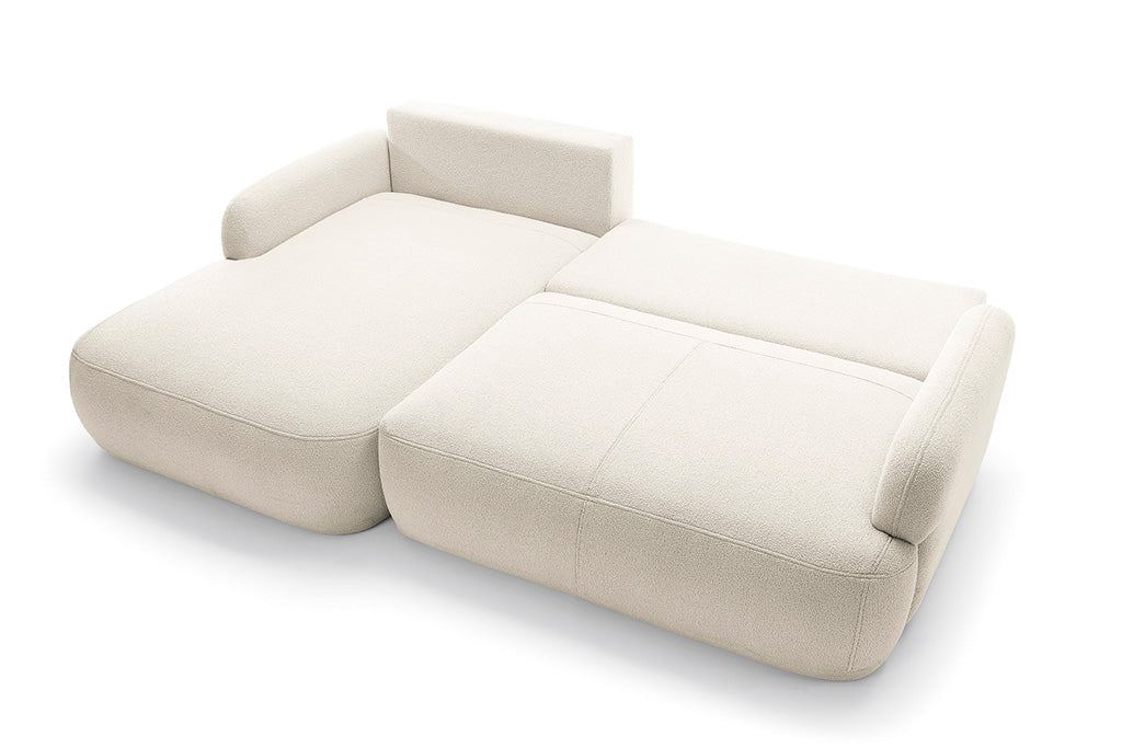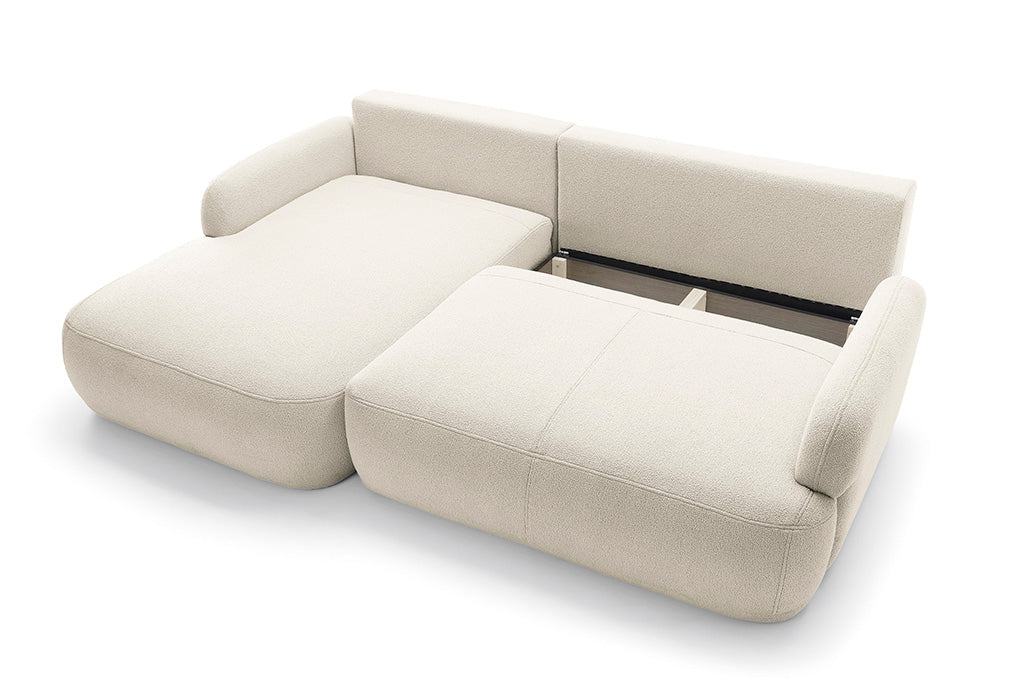 SABA oferuje nie tylko unikalną estetykę, ale też wygodną funkcję spania codziennego. Dzięki prostemu mechanizmowi rozkładania, narożnik szybko zamienia się w łóżkoo powierzchni 215 × 140 cm, zapewniając komfortowy wypoczynek na co dzień i dla gości.