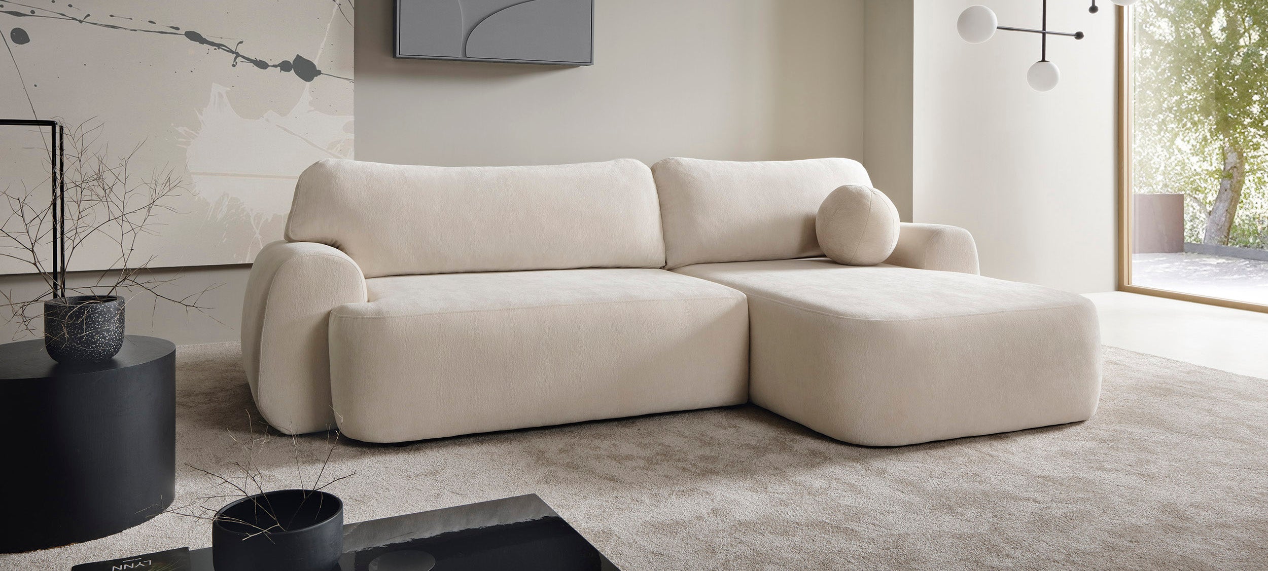 Sofa narożna WEST to propozycja dla miłośników eleganckiego minimalizmu. Jej miękka linia i jednolita tkanina tworzą wrażenie harmonii i spokoju – dokładnie tego, czego szukasz w domowej strefie wypoczynku